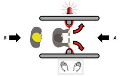 En caso de urgencia, las puertas pueden ser desbloqueadas con una simple maniobra de empuje y se abren automáticamente en el sentido de la evacuación (sentido B)